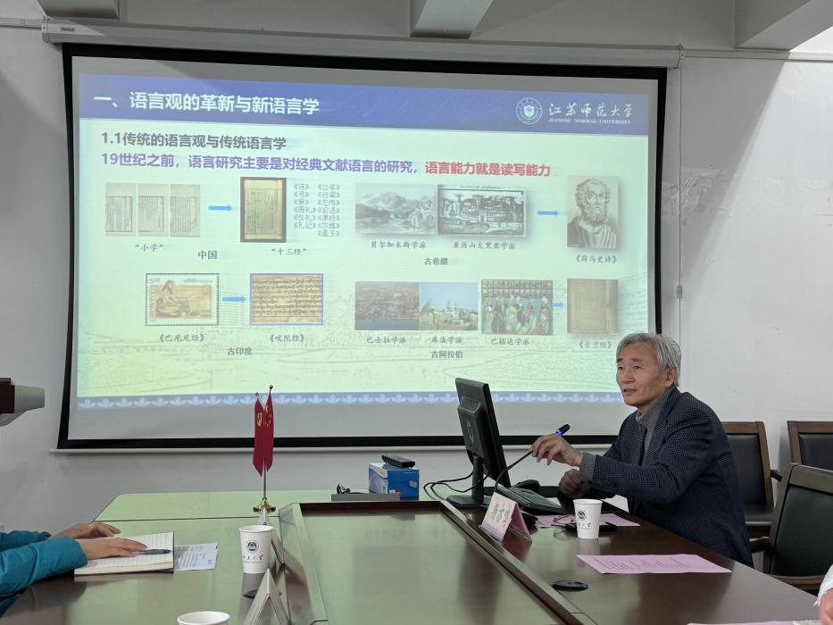 2024年1月8日下午,江苏师范大学语言科学与艺术学院院长杨亦鸣教授受邀莅临乐鱼leyu(中国),为师生作了题为“语言观变革与语言学新发展:从文化软实力到科技硬实力”的学术讲座。江南大学党委副书记刘淼出席活动,乐鱼leyu(中国)院长方文开、社科处副处长杨恋恋、学院师生等80余人参加了讲座。讲座由院党委书记李荣华主持。