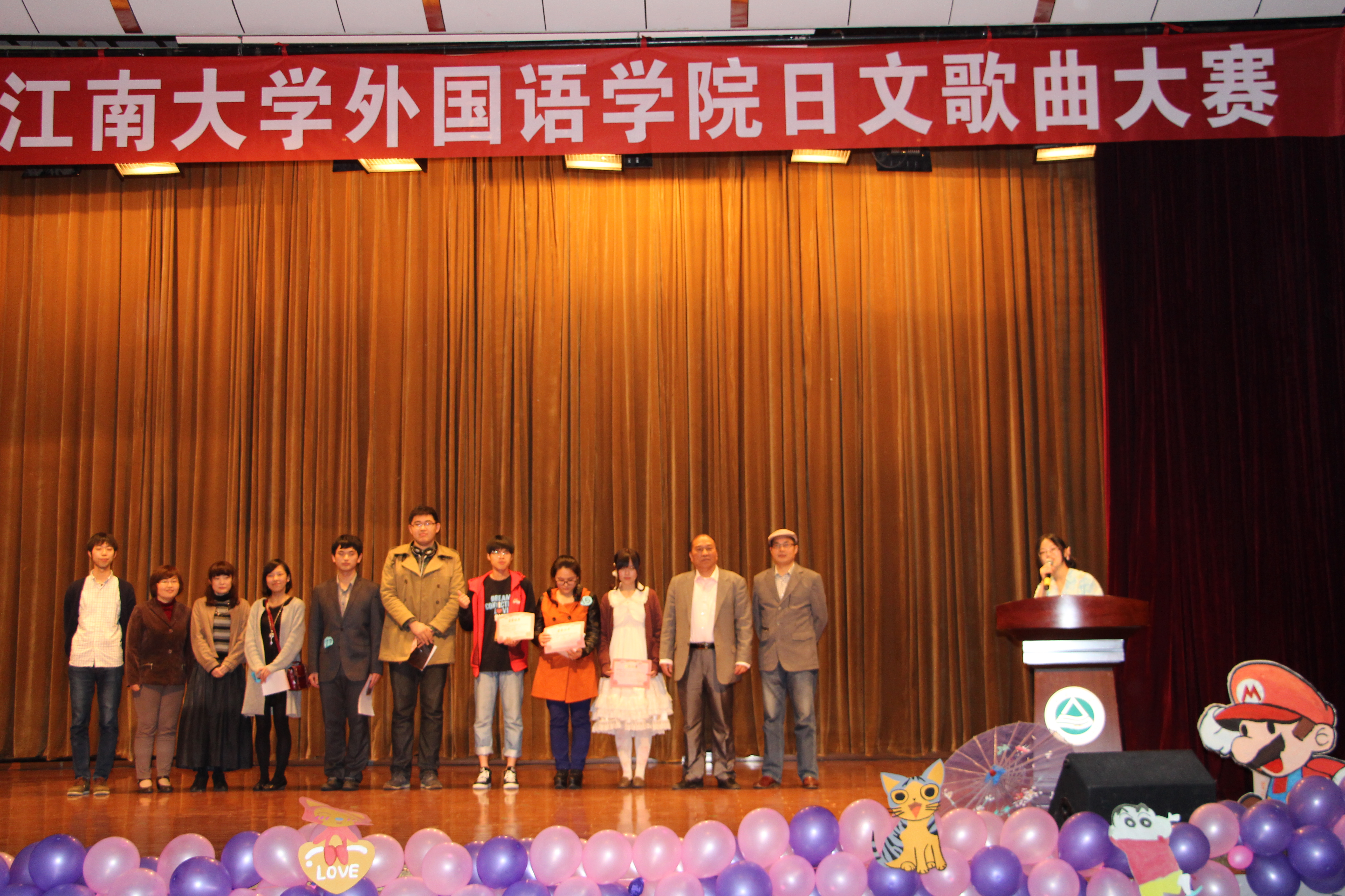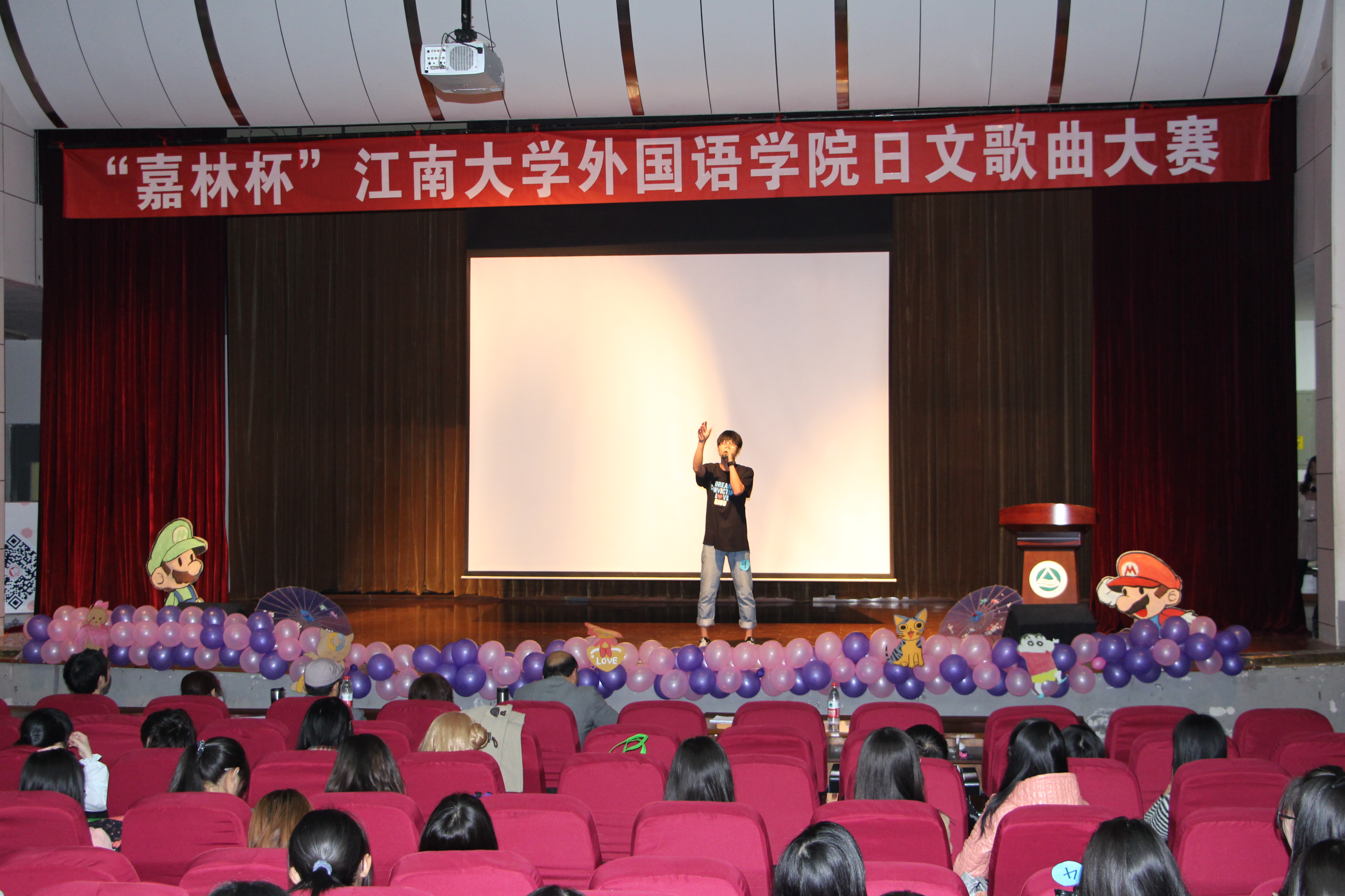 4月19日,由江南大学外国学院主办的日文歌曲大赛在南区大学生活动中心拉开帷幕。本次日文歌曲大赛是乐鱼leyu(中国)极具特色的大型活动之一,旨在为全校日语爱好者提供交流与展示的平台,历年来广受全校日语爱好者的喜爱。此次比赛除外语学院的学生积极参加之外,还吸引了食品学院、设计学院、物联网工程学院、商学院以及北美学院等学院的四十余名同学参加。日语系副主任崔明姬、副教授周韬、日籍教师田村恭平、中西由美子以及赞助商出席了比赛,并担任了评委。