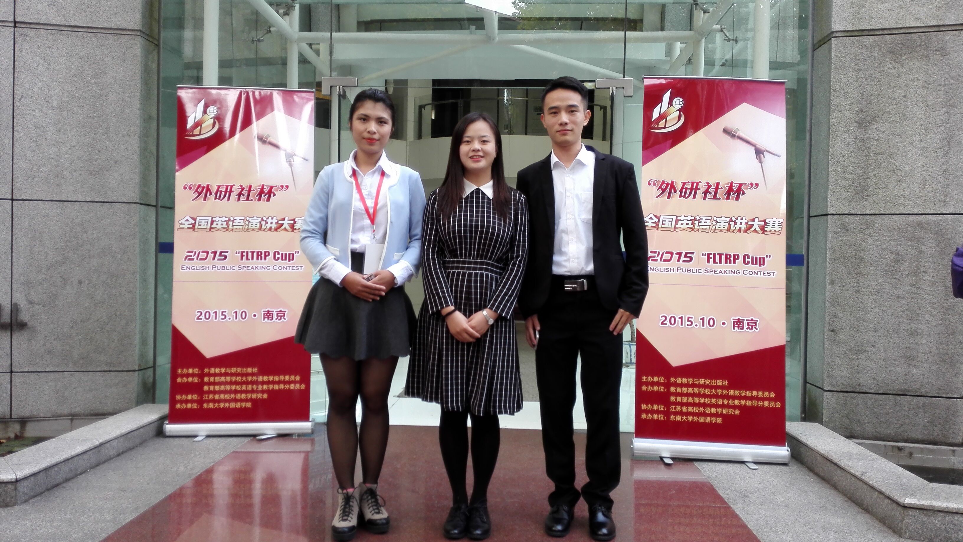 2015年“外研社杯”全国英语演讲大赛江苏赛区决赛于10月31日-11月1日在东南大学举行,来自全省高校150多名选手及百余位指导教师参加了比赛。外语学院叶挺、潘梦婷、食品学院黎蕾蕾同学在比赛中凭借出色的表现,分别获二等奖和三等奖的好成绩。严敏芬教授和钱薇薇老师带队参赛,分别获得优秀指导教师荣誉称号。