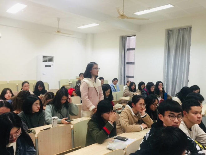 首位发言人是来自食品学院学生会就业创业中心主任童红燕学姐,她曾获江南大学第四届“十佳主持人”、江南大学第十八届“十佳演说家”冠军等多个奖项,在演讲和主持方面十分有经验。童红燕学姐首先强调了口才的重要性,并从活动主持、话题演说、项目答辩等三方面仔细介绍了口才之于学生会的应用领域,还介绍了提升自己的口才能力的技巧和方法。此外她给出了一些克服登台紧张的实用技巧,并耐心解答了同学们提出的疑问。童红燕学姐的互动提问环节,使得整个会场气氛活跃起来,让大家都真切地感受到了口才的魅力。