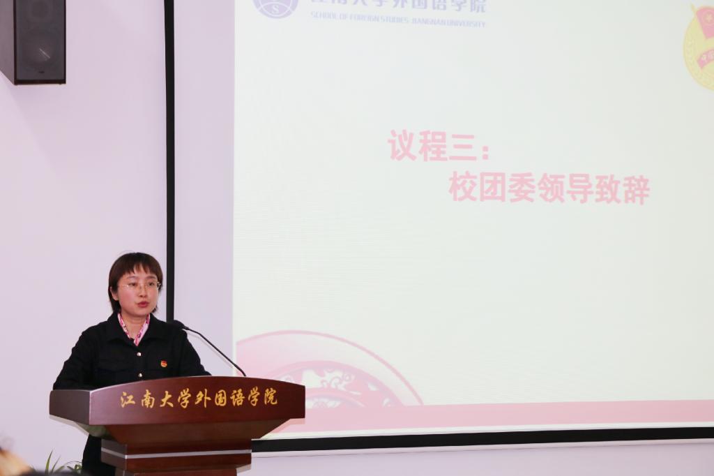随后,校团委副书记单云婷老师致辞。首先单书记对入围青马训练营的同学表示热烈的祝贺,她提出要保持团组织的先进性,用习近平新时代中国特色社会主义思想的理论武装自身,武装全团;更重要的是,要紧跟党的领导,坚定中国特色社会主义思想,保持思想与党中央高度一致。她嘱托在座青马训练营营员能够在本次青马训练营中体会马克思主义的伟大意义,坚定理想信念,学习理论知识,并以青马为起点,“学有所得,学有所成”。