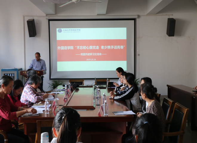 会议伊始,刘伯贤副书记代表学院党委致辞。刘书记说:两支部老党员退休不退岗,在党团共建过程中继续发挥党员余热,点燃青年学子爱国热情,学院党委对共建支部的老党员表示衷心感谢。“本次活动不仅是学院关工委内涵提升的需要,也是为了积极响应习近平总书记在“不忘初心、牢记使命”工作会议上提出守初心,担使命,找差距,抓落实的总体要求。” 最后,刘书记强调:只有理论清醒才有政治坚定,青年学子要将个人思想统一到国家主旋律上。