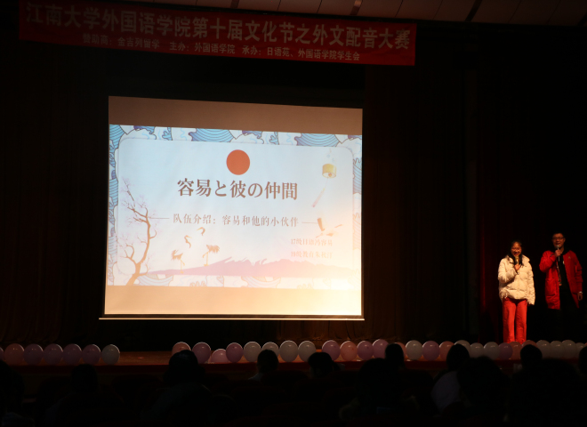 12月8号下午14:30,乐鱼官方端网站登录入口第十届文化节之外文配音大赛决赛在南区活动中心举行。乐鱼leyu(中国)英语系郑赛芬老师、日语系外教田村老师、藤田老师、乐鱼leyu(中国)分团委副书记张圆老师以及研究生会、学生会主席作为评委参加决赛。