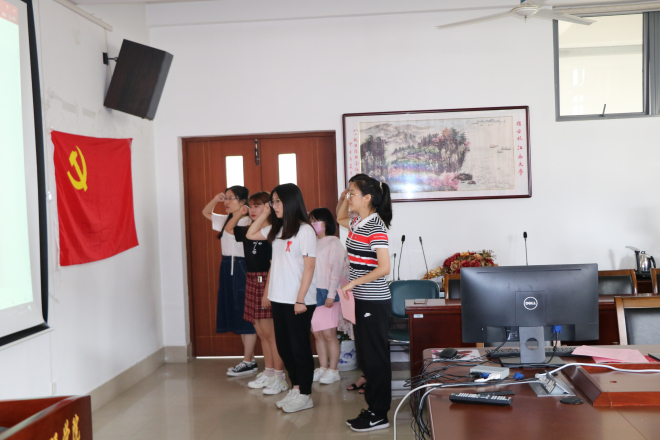 随后杨艳带领大家通过“学习强国”平台,观看“七一”主题原创微视频《我宣誓》,一张张画面把中国共产党艰苦创业、一心为民的形象鲜活地呈现出来,传递出每一位党员的坚定信仰,以及对党组织最深沉的热爱。最后,刘伯贤给毕业班学生党员上了最后一堂党课。他说大家要发扬党的优良传统,牢记全心全意为人民服务的宗旨,在各种的岗位上努力学习和工作,积极发挥党员的先锋模范作用,无愧于“共产党员”的光荣称号。