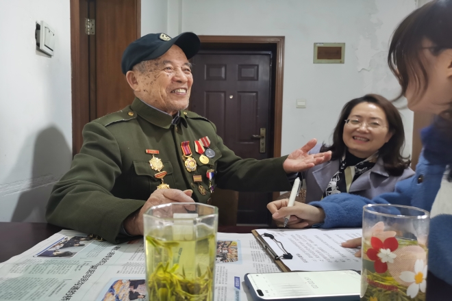 许德山老人现年96岁,身体硬朗,精神矍铄。许老曾参加过新莱战役、维县战役、大汶口战役等解放战争,荣获二等功三次、三等功六次、四等功三次,在抗美援朝战争中荣立二等功一次、获得朝鲜军功章一枚、解放军奖一枚等多项荣誉。作为一名有着75年党龄的离休干部,许老始终保持共产党员的先进性,坚持理想信念,永葆革命本色,时刻关心党的事业,关心国家的发展,积极参加党支部活动,热心支持社区工作,关心年青同志的成长。
