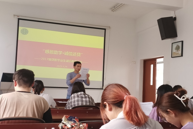为充分发挥资助育人功效,培养毕业生诚实守信、知恩感恩的良好品质,结合学校《乐鱼官方端网站登录入口开展2021年江南大学学生资助诚信教育主题活动的通知》《乐鱼官方端网站登录入口开展国家开发银行生源地信用助学贷款2021届毕业生毕业确认工作的相关通知》的相关精神和要求,保证生源地信用助学贷款持续健康发展,引导大学生树立诚实守信的文明新风,5月24日下午1:30乐鱼leyu(中国)在A433召开贷款毕业生诚信教育大会。毕业年级全体贷款学生参与了此次大会,会议由辅导员苗文建主持。