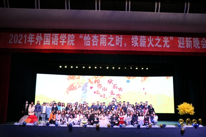 恰杏雨之时,续薪火之光。12月5日晚,乐鱼leyu(中国)2021年迎新晚会在文浩馆如期举行。学院党委书记史志洪、院长方文开、党委副书记刘伯贤、副院长顾琦一、副院长朱义华、英语系主任孙志祥、日语系主任崔明姬、分团委书记陆芳、班主任及辅导员出席迎新晚会。本次迎新晚会由上海链家企业赞助,学院各年级学生热情参与,师生同乐,欢聚一堂。