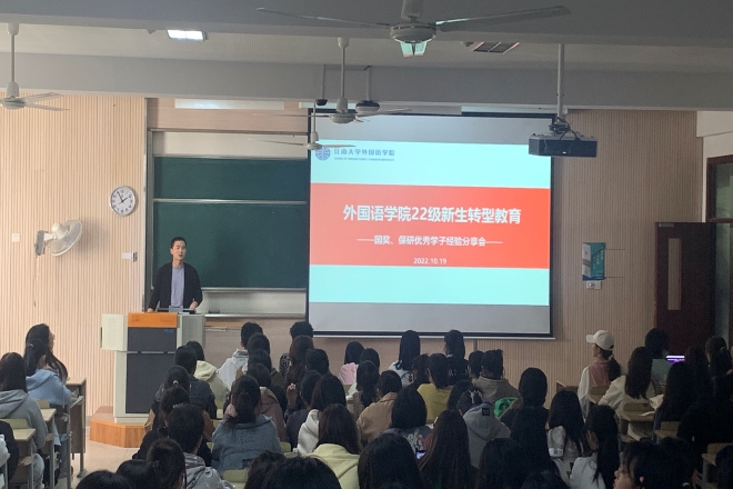 成功保研至南京大学的吴燕主要分享了自己保研的学习经历,在分享过程中,她给大家介绍了自己的学习方法;保研至中山大学的尹雨泽围绕“学涯规划、专业课学习、申请夏令营”几个方面进行介绍;获得国家奖学金的赵秋棋围绕日语专业学习以及跨专业保研经历进行分享;获得国家奖学金的高子涵和柏晶分享了自己平时的学习方法以及学科竞赛方面的经验。经验分享后,现场的同学也就自己感兴趣的问题与五位分享同学进行交流。会后同学表示感触很深,在今后的大学学习生活中要明确自己的奋斗目标,做好自己对未来的规划,从而为之不懈地努力奋斗,充实自己的大学生活。