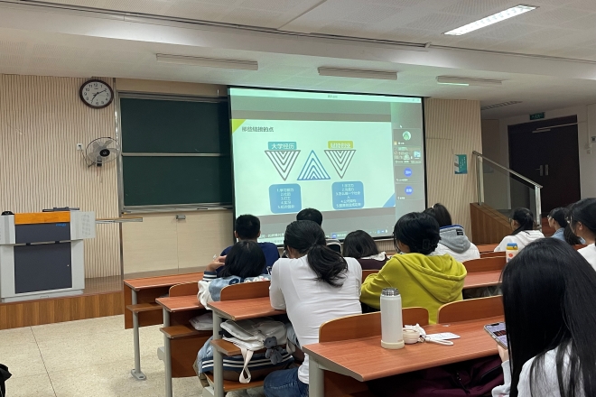 10月20日,乐鱼leyu(中国)新生转型教育暨“遇见更好的自己”第十八期在教学楼1A410开展。本次活动以《在对的时间做对的事—文科生的创业历程》为主题,邀请了学院优秀毕业生、脑洞英语课堂创始人谢婷婷线上分享创业经验,学院22级新生以及部分21级、20级同学参加分享会。分享会由辅导员苗文建老师主持。