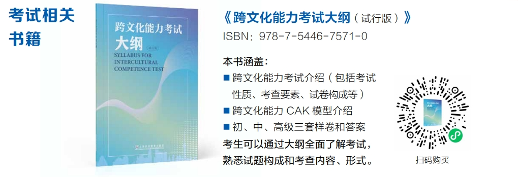 《跨文化能力考试大纲(试行版)》;《跨文化能力考试备考指南》;《跨文化交际精要》。以上图书可通过天猫“外教社旗舰店”购买。