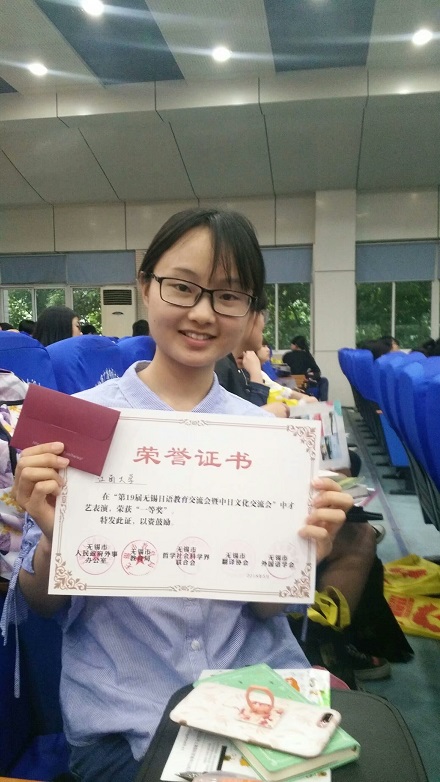 下午的比赛中,我院日语系三位参赛选手以清晰的日语发音,流利的日语表达,临危不乱的现场发挥,打动了观众和评委,也展示了扎实的日语知识和全面的综合能力。最终,戚维欣同学荣获本科组特等奖,黄倪及王晗同学荣获二等奖。我院已连续多年在“太湖杯”日语演讲比赛中取得了可喜的成绩。