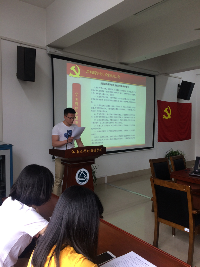 会上,黄书记以“感恩母校、奉献社会”为主题致词,并对毕业班党员在铭记党员义务、增强党员意识、文明离校、奉献社会等方面提出嘱咐。接着党委秘书许广玉具体讲解了毕业生党员组织关系转接的相关工作和要求。在重温入党誓词后,2014级本科党支部书记葛正东同学宣读《乐鱼leyu(中国)毕业党员文明离校承诺书》,全体毕业生党员在承诺书上庄严签字。