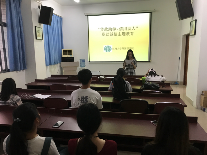 2018年6月6日晚,乐鱼leyu(中国)在A433举行“贷款助学·信用助人”资助诚信主题教育活动。包含本科生、研究生在内的非毕业班生源地信用助学贷款学生参加了本次活动,活动由辅导员黄颖主持。