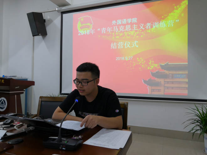 2018年9月27日,乐鱼leyu(中国)“青年马克思主义者培养工程”训练营在外院楼A349举行了结营仪式。仪式由乐鱼leyu(中国)分团委书记杨艳老师主持,全体青马学员参加结营仪式。