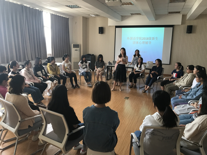 2018年9月26日下午3点半,乐鱼leyu(中国)2018级新生团体心理辅导活动于学院A529举行,学校心理健康中心兼职教师、人文学院辅导员张慧、乐鱼leyu(中国)心理辅导员张圆、18级新生辅导员黄颖、各班心理保健委员和学生代表参与了本次活动,本次团体心理辅导的主体为“快乐你我他——大学生压力与情绪管理”。