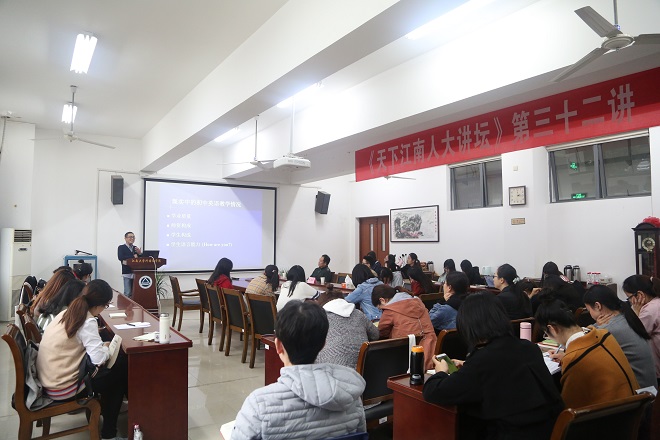 针对外语专业毕业生从事中小学外语教学人数众多的特点,为提高我院研究生与本科毕业生对中小学外语教学与教师职业的了解,11月7日下午,外语学科优秀校友、无锡市英语学科带头人、无锡市教育科学研究院包丰教研员应邀回母校讲学。包老师以“漫谈初中英语教学及其研究”为题,为外院学子的求职之路与教学生涯“传道解惑”。江南大学校友总会林云鉴秘书长、乐鱼leyu(中国)刘伯贤副书记与朱义华副院长,研究生二、三年级同学与部分老师以及本科生参加了本次活动。活动由刘伯贤副书记主持。