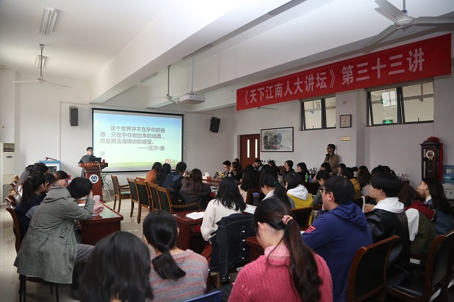 随着校庆脚步的日益临近,乐鱼leyu(中国)献礼学校60周年华诞的活动正一波接一波地袭来。11月14日下午,《天下江南人大讲坛》第三十三讲在乐鱼leyu(中国)会议室开讲。乐鱼leyu(中国)杰出校友代表、全国外语教育专业委员会委员、无锡金桥双语实验学校初中高小芳校长回母校,为学弟学妹们做了题为“新时代外语教师成长新动向”的讲座。此次大讲坛是乐鱼leyu(中国)献礼学校60周年校庆暨2018外语学科系列讲座之一,外国语学学院全体研究生,部分教师与本科生有幸聆听了此次讲座,朱义华副院长主持了本次活动。