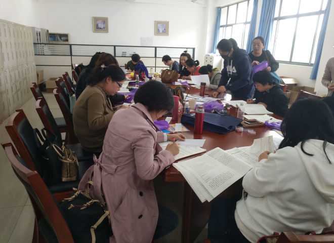 下午12时许,乐鱼leyu(中国)阅卷组老师在乐鱼leyu(中国)大外办公室进行紧张的阅卷工作。各阅卷老师集中阅卷、认真细致,公平公正,争取尽快完成分数统计校对,圆满完成考试后续工作。