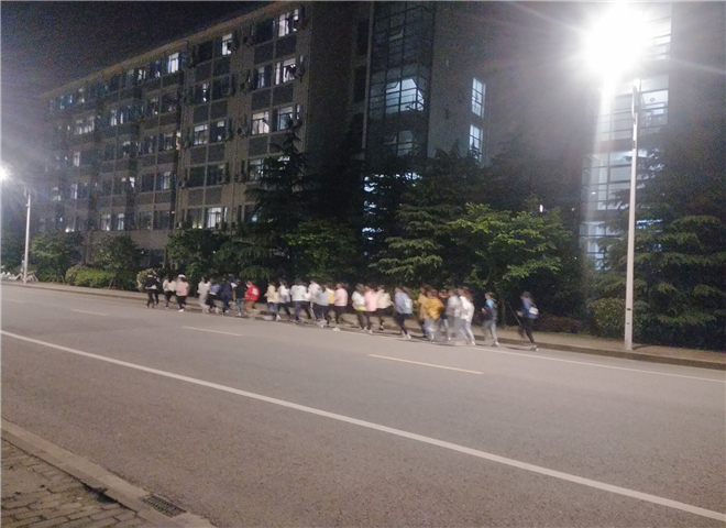 青春与时代相辉映,青年与祖国共奋进。为纪念五四运动100周年,继承和弘扬五四精神,展现当代青年青春风貌,进一步增强青年学子的身心健康,乐鱼leyu(中国)“增强心动力训练营”与2018级八个团支部共同开展“五四青年节荧光夜跑活动”。青年学子相约在五月每周一三日的夜晚,手举国旗和共青团团旗,在江大春暖花开的校园完成4.1公里的奔跑。同学们高唱《我和我的祖国》等爱国歌曲,在校园中形成一片红色海洋。