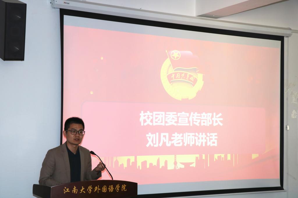 校团委宣传部长刘凡老师在特称团支部交接仪式上讲话
