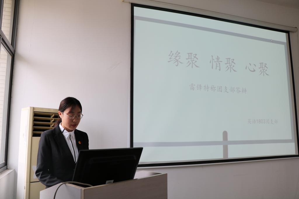 5月9日下午,乐鱼leyu(中国)“张闻天特称团支部”、“雷锋特称团支部”答辩会于A433顺利完成。院分团委书记杨艳、分团委副书记张圆、辅导员黄颖以及上届张闻天特称团支部团支书王闰超出席了答辩会并担任评委。5月10日下午,特称团支部交接仪式于A349如期举行。校团委宣传部长刘凡、乐鱼leyu(中国)党委副书记副院长刘伯贤、乐鱼leyu(中国)分团委书记杨艳以及上届张闻天特称团支部团支书王闰超同学、雷锋团支部英语1603班团支书冯心怡同学,英语1803团支部、英语1805团支部的全体成员参加了交接仪式。