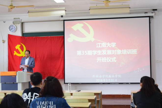 2018年3月31日上午8:30,江南大学第35期学生发展对象培训班开班仪式在2D102教室顺利召开,外国语学院党委副书记、副院长刘伯贤老师、乐鱼leyu(中国)分团委书记杨艳老师、马克思主义学院陈永杰老师出席了此次会议。本次会议由乐鱼leyu(中国)党委副书记刘伯贤老师主持,并邀请陈永杰老师为本期学生发展对象做了一场精彩的讲座。