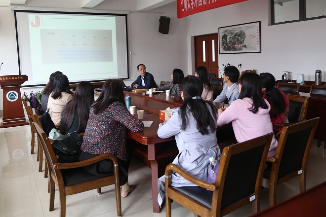龚院长向客人介绍了我院“各取所需,个性发展”的教学改革理念,与大家共同探讨了大学外语教学所面临的困境和问题,并提出了新一轮大学英语改革的基本构想。