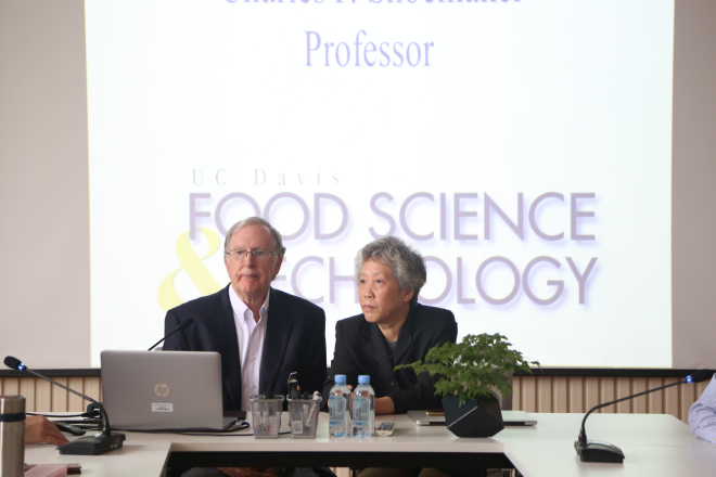 2018年5月7日上午,乐鱼官方端网站登录入口在A529举办了“遇见更好的自己”首期名师沙龙活动。首期嘉宾邀请了加州大学戴维斯分校食品科学与技术系教授 Charles F. Shoemaker。一同出席的还有江南大学原副校长王武、乐鱼leyu(中国)党委书记黄城芳、乐鱼leyu(中国)党委副书记刘伯贤,以及学院各年级学生代表。