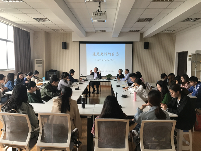 活动开始由黄书记致辞,首先他对Charles F. Shoemaker教授和王武副校长的到来表示热烈欢迎。然后,黄书记阐述了开展“遇见更好的自己”名师沙龙活动的初衷和缘由。他提到,教育的根本问题和永恒主题是“培养什么人,怎样培养人”,必须牢牢抓住培养社会主义建设者和接班人这一根本任务。他引用了习近平总书记5月2日在北大考察时的讲话,即“高校要牢牢抓住培养社会主义建设者和接班人这个根本任务,坚持办学正确政治方向,建设高素质教师队伍,形成高水平人才培养体系,努力建设中国特色世界一流大学。”这对高校培养什么的人才提出了目标,对高校培养人才模式提出了更新的要求。在此背景下,“遇见更好的自己”将围绕学生专业特色,以服务学生为依托、以立德育人为原则、以面向社会为导向,打造全员、全过程、全方位育人的新课堂。