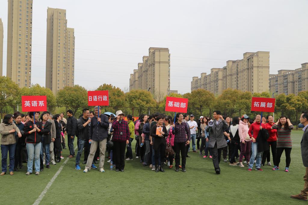 4月15日下午两点,乐鱼leyu(中国)在学校体育中心东侧小足球场举行了第五届教职工运动会。运动会由学院分工会主席管纪龙主持,学院党委书记黄城芳做开幕式动员讲话,拓展部米家全老师和英语系朱义华老师分别代表裁判员和运动员做宣誓发言。运动会分为四个团体代表组,分别为英语系、基础部、拓展部、日语行政等合计120余人,4名学生志愿者参与运动会会务。