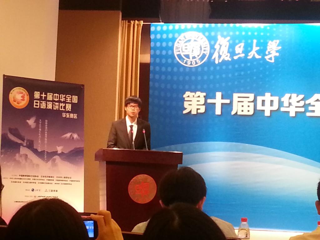 2015年06月13日,第十届中华全国日语演讲比赛华东赛区预赛在复旦大学举行,来自复旦大学、上海交通大学、上海外国语大学、浙江大学、南京师范大学、南昌大学等华东地区21所高校的参赛选手经过激烈角逐,共有8名同学获得不同奖项。我校2013级日语专业陈天泓同学发挥出色,力克华东地区多位名校的优秀代表选手,最终以优异的成绩获得了特等奖,崔明姬老师也获得了优秀指导教师奖,为我校争得了荣誉。这是日语系学子在该项赛事中取得的第二次特等奖。