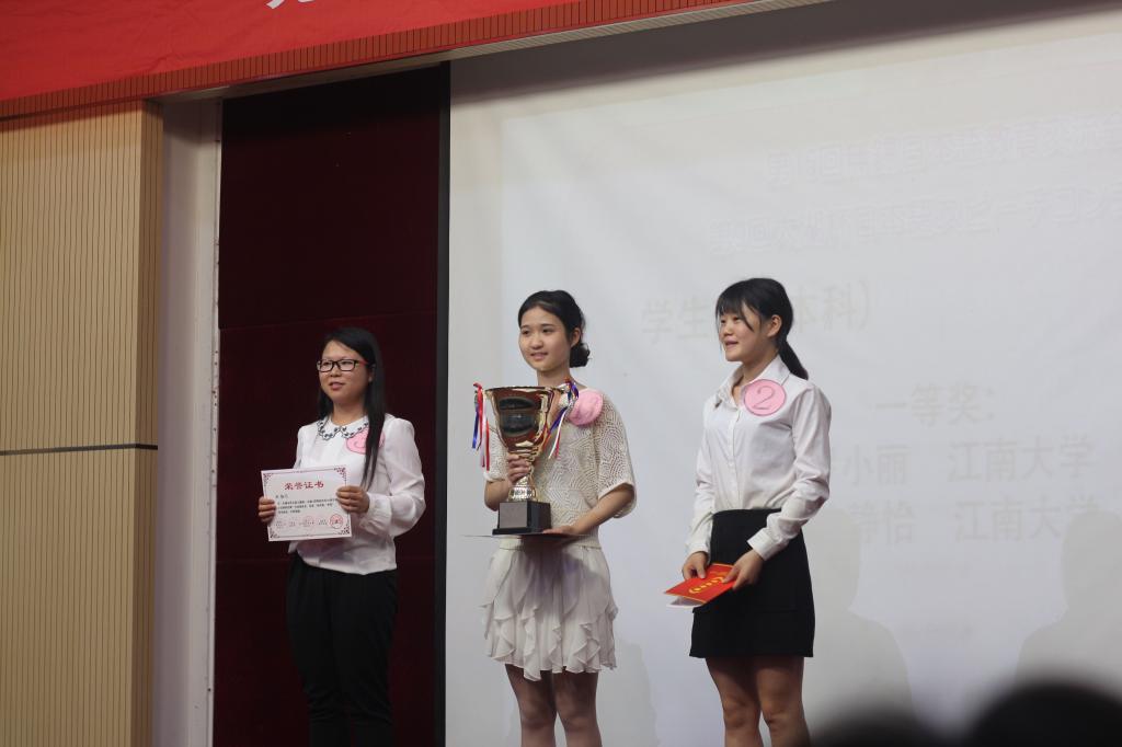 此外,在赛前的演出节目中,我校日语系学生季文同学代表江南大学演唱了经典日文老歌,深深打动了评委老师及在场的每一位观众,最终荣获“表演组特等奖”,为我校博得热烈掌声。