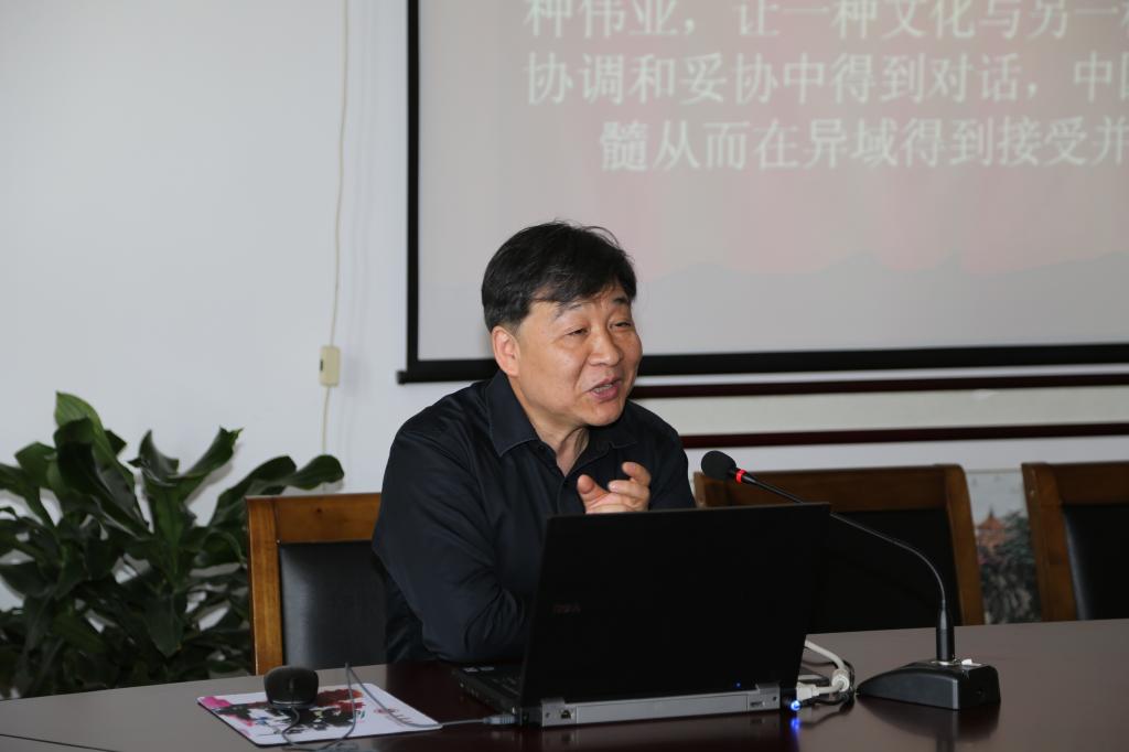 4月28日下午,清华大学外文系罗选民教授应邀在乐鱼leyu(中国)大会议室(A349)做了题为“文化自觉与中国经典英译”的学术讲座,讲座由翻译研究团队负责人王金安教授主持,学院领导和师生共50余人参与了本次学术活动。