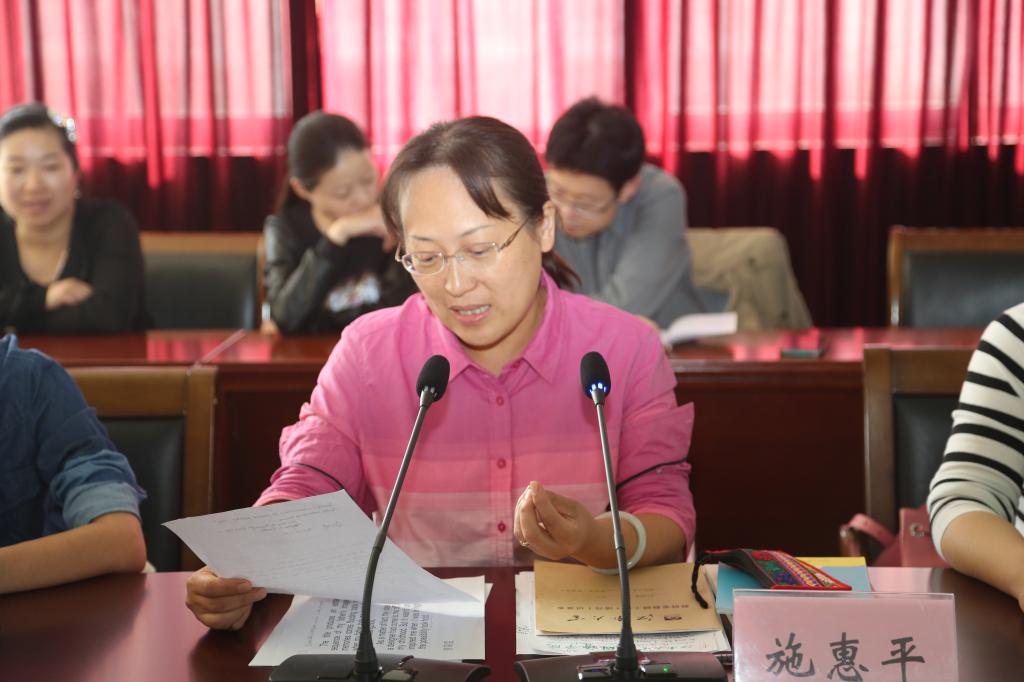 2015年10月22日下午,文科楼A349的会议室里江南大学首届至善教学名师施惠平老师在这里与乐鱼leyu(中国)的教师们座谈交流。