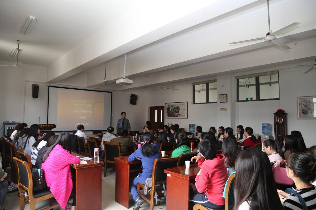421日下午,山大外院刘振前教授、博导作了题为“外语教学研究方法与论文写作漫谈”的学术报告;会议由副院长方文开教授主持。