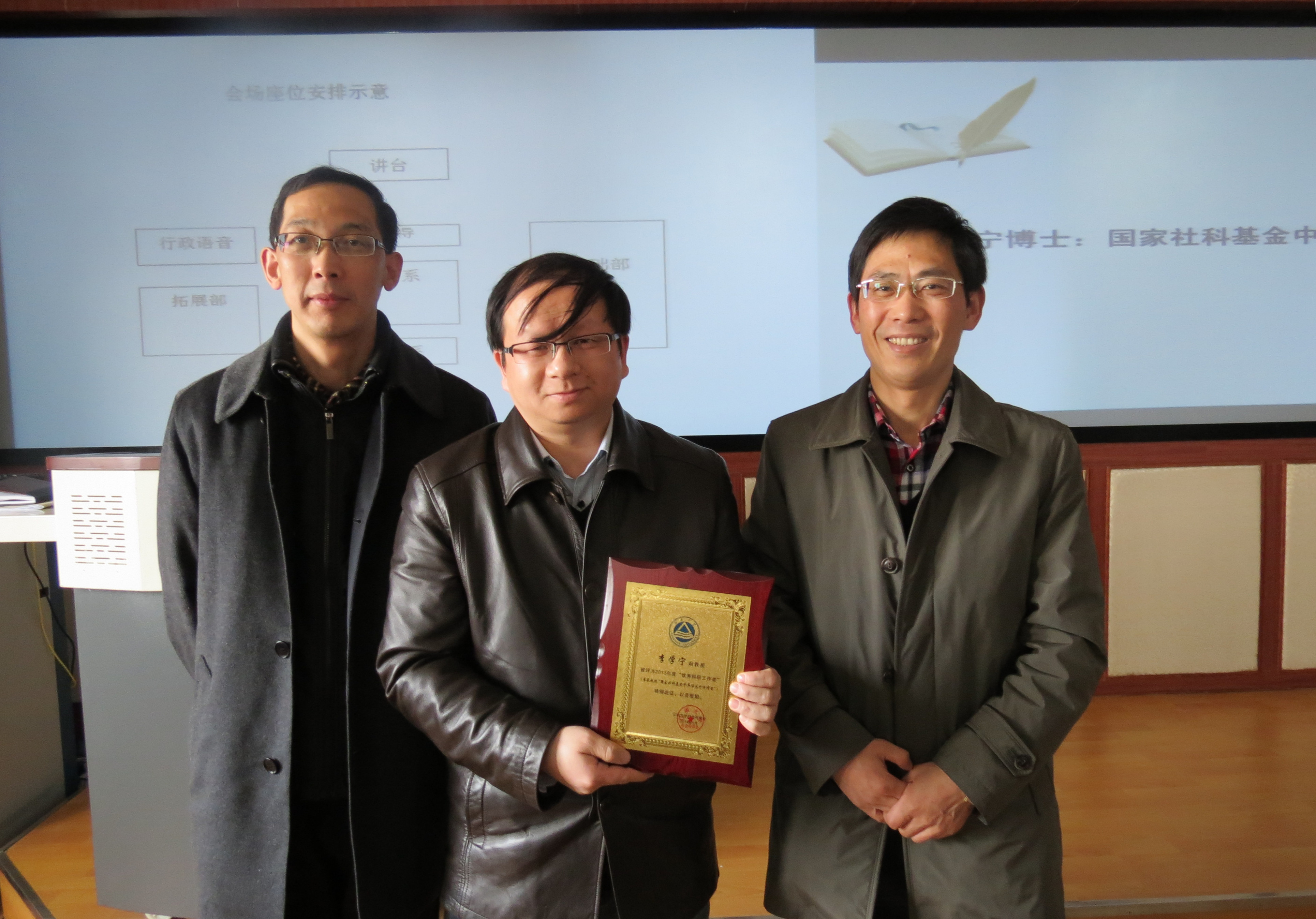 从刚刚召开的我校科研工作会议上获悉,我院李学宁副教授被学校评为2013年度“科研优秀工作者”,其研究项目“爱与思——生活儒学的观念”—首获我校“国际社科基金中华学术外译项目”。