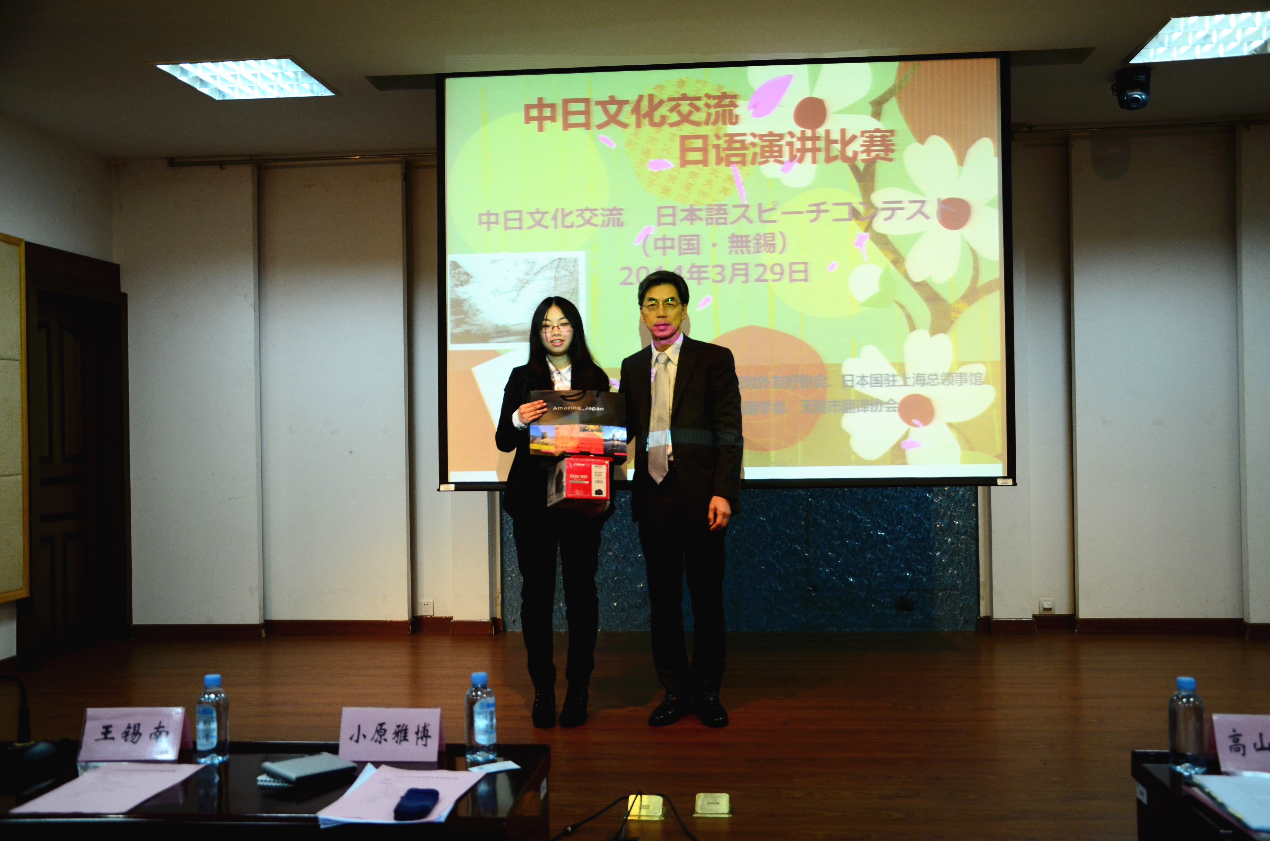 2014年3月29日上午10时,由无锡市人民政府外事办公室和日本国驻上海总领事馆主办,无锡市外国语协会、无锡市翻译协会协办,江南大学承办的中日交流日语演讲比赛决赛于文浩馆拉开序幕。驻上海日本总领事小原雅博、江南大学副校长徐岩、无锡市人民对外友好协会会长王锡南、秘书长许睿煜出席了本次比赛。