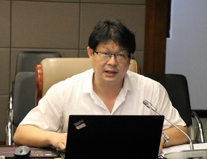 俞洪亮教授做主题发言:《推动研究范式变革,再构外语类学科体系》