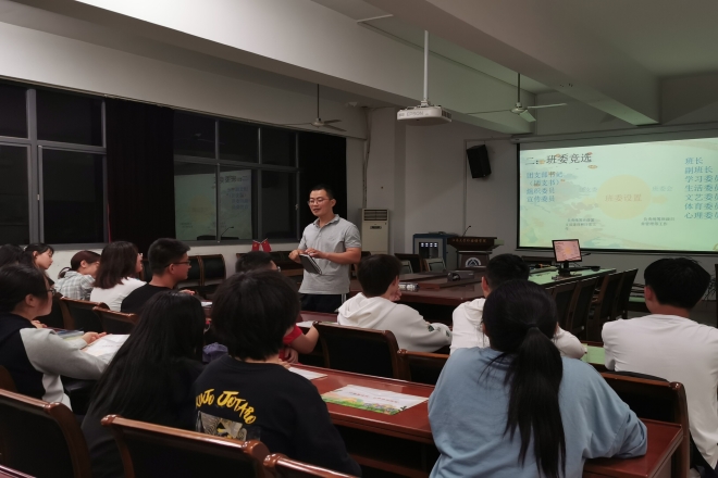 培训会后,新生班主任们分别前往班级召开班会。班会主要围绕网络安全、心理健康、防疫和新生转型教育四个方面进行,并在会上对近期重要事项,如贫困生认定和申请以及军训的相关事项作了明确要求、详细解读了学生手册、开展了多形式的班委竞选活动,组建了学生骨干队伍,第一堂班会课的开展有利于班级事务更加高效地完成,为班级建设创造了良好条件。