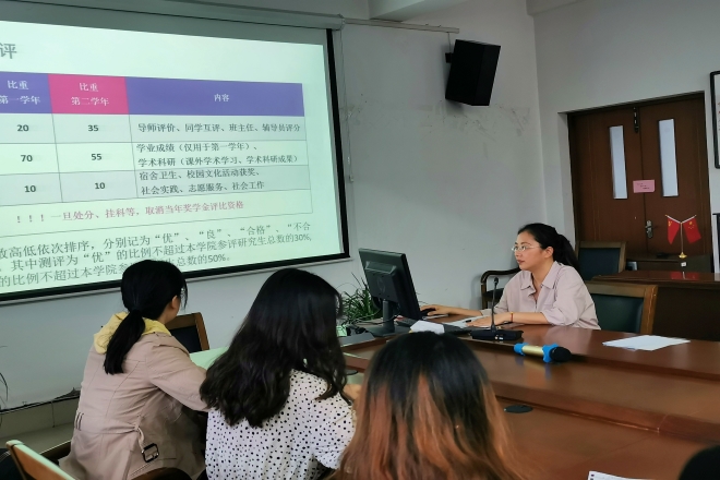 2021年10月13日,乐鱼leyu(中国)2021级硕士第一次大会在学院A349举行,会议由辅导员陆芳老师主持,全体2021级硕士新生参加。