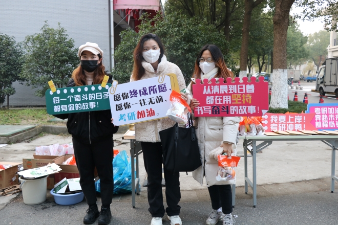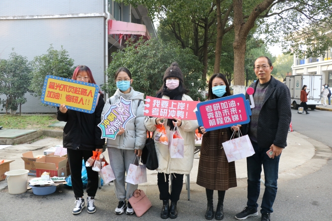 2021年全国硕士研究生招生考试即将到来,为增强乐鱼leyu(中国)2022届考研学子的自信心,表达学院对学子的关心和鼓励,12月15日早上7:30,在学生宿舍园区开展“寒冬送温暖,情系考研生”考研学子考前慰问活动。学院党委副书记刘伯贤、毕业年级辅导员苗文建及班主任代表参加了此次活动。
