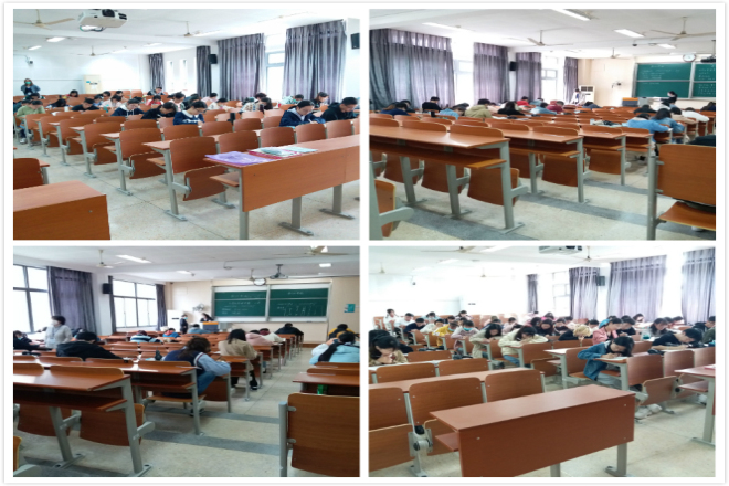 整场考试严格按照防疫预案,考生佩戴口罩进入教学楼前均进行体温测量,考场内放置了免洗消毒液,预留了隔离教室。为了保障本次竞赛顺利开展,学院也多次召开竞赛筹备工作会议。竞赛当天,学生工作处、教务处领导在学院党委书记史志洪、党委副书记刘伯贤的陪同下巡视了各考场情况。乐鱼leyu(中国)副院长顾琦一、副院长朱义华全程监控各考场动态,副院长谢竞贤监控听力效果。考务与监考老师分工明确、各司其职。由于提前做好了整个竞赛考试的准备工作,从而使考场防疫、试场安排、监考培训、试卷安保及运输、听力播放、考场监考、答卷回收、批改阅卷等各个环节得以规范有序进行。