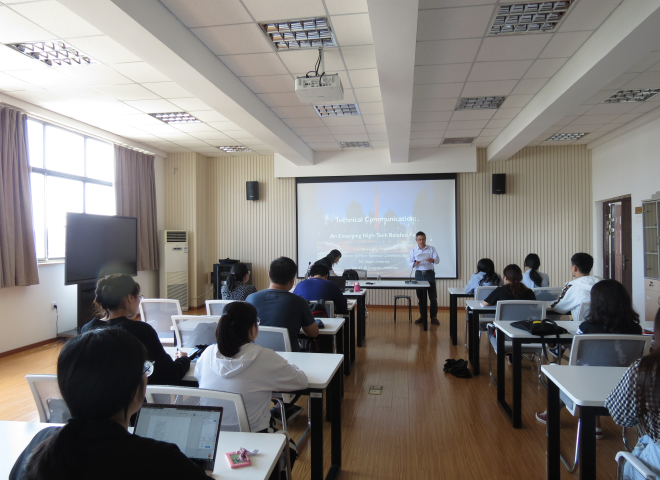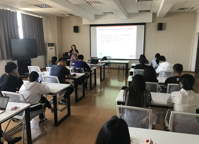 5月28日下午两点,2019外语学科系列讲座暨第六期“遇见更好的自己”名师沙龙活动在乐鱼leyu(中国)A529准时召开。本次活动由美国北卡罗莱纳州立大学(NCSU)英语系技术传播专业教授丁慧玲主讲。参加本次沙龙活动的有专业课老师及学院各年级本科生和研究生。本次讲座的主题是:技术传播:一个蓬勃发展的写作设计行业。