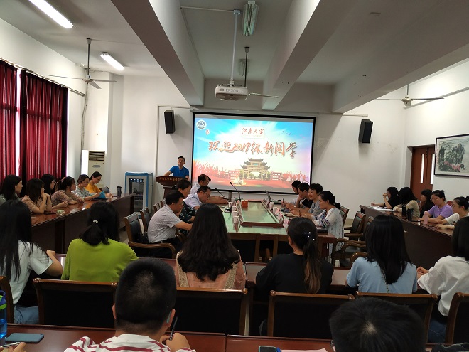 9月6日下午,乐鱼leyu(中国)2019级英语语言文学专业研究生新生见面会暨入学教育活动在文科楼A349会议室成功举行。出席本次会议的有乐鱼leyu(中国)党委黄城芳书记、方文开院长、刘伯贤副书记、施惠平副院长、朱义华副院长、教师代表王金安教授、院行政办公室主任华芒老师,院党委秘书许广玉老师与研究生辅导员杨艳老师,研究生老生代表2017级吴佳同学和2019级全体新生,朱义华副院长主持了本次活动。