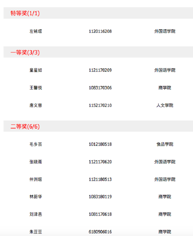 获奖的同学可以登陆“外研社·国才杯”官网http://uchallenge.unipus.cn领取获奖证书电子版。在本次校选赛中,来自乐鱼leyu(中国)的英语16级学生左铭瑶同学获得特等奖,此外,本次选拔赛中成绩在前三位的左铭瑶、童星如及唐义慈同学将代表江南大学参加江苏省赛区复赛,预祝她们赛出好成绩。