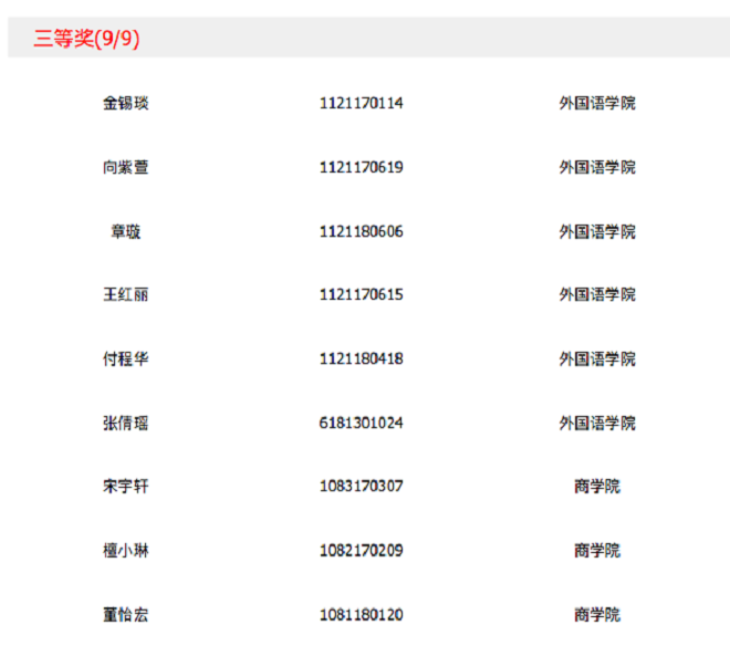 校选赛结束后,为保证比赛结果的公平公正,写译团队立即组织评委对参赛作文进行评阅,采取线上成绩和线下成绩相结合的方式,先后进行了三轮线下评阅,参与评阅的评委包括我院以英语为母语的外籍教师、具有丰富授课经验的写作教师刘梅副教授及资深文学方向教师蒋怡博士,评委们严格按照评分标准对参赛作文进行批阅。根据本次大赛的章程及组委会要求,经过线上评阅及线下评阅,本次校选赛共19位参赛者获奖(获奖名单中同一奖项获奖学生名字非按成绩排序,为Uchallenge系统自动排序)。