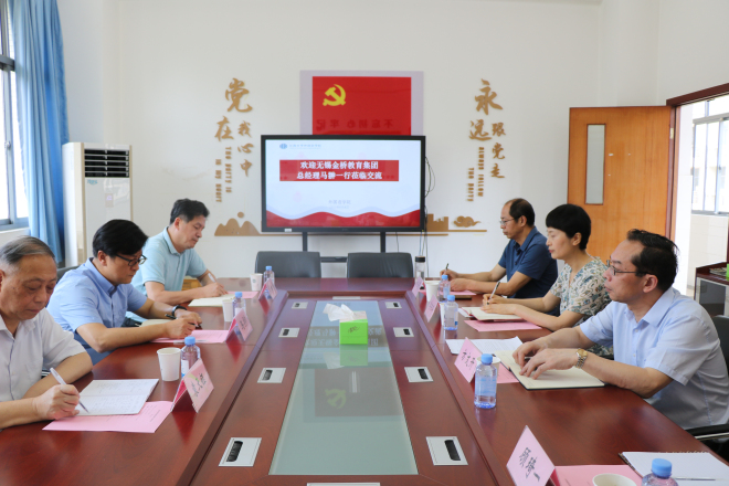 6月8日上午,无锡金桥教育集团总经理马翀,集团综合办主任马松杉,集团教研院院长袁天钰等一行来乐鱼leyu(中国)调研交流。乐鱼leyu(中国)党委书记李荣华、院长方文开、副书记刘伯贤和副院长顾琦一等参加座谈交流。