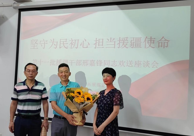 邢嘉锋老师作为第十一批援疆干部之一,即将前往石河子大学,开始为期三年的工作。相信他能够在新的岗位上发挥自己的优势,展现出自己的风采,为两校之间的友谊和合作添砖加瓦,也期待他三年后带着丰富的经验和成果回到乐鱼leyu(中国)。