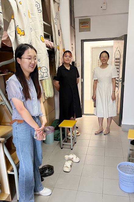 在走访过程中,学院领导老师对新生们的到来表示热烈的欢迎,亲切询问大家来自哪里、对宿舍条件是否满意、入学以来适应程度等。老师们叮嘱新生,初入校园,要提高安全防范意识,坚决抵制各种上门推销活动,确保人身财产安全,谨防诈骗。同时,希望同一寝室中来自不同地域的同学们,能够互相包容、互相学习,增进对彼此地域文化的了解,从而营造积极向上的良好宿舍氛围。
