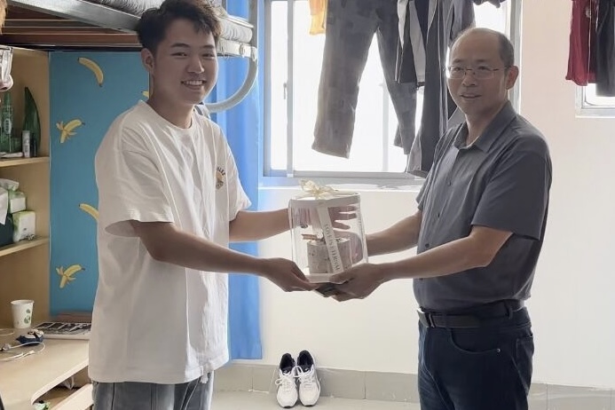 走访当天,时值曹凯等三位同学的18岁生日,学院领导老师特地送上生日蛋糕与祝福,用满满的仪式感为同学们开启大学生活的序幕。